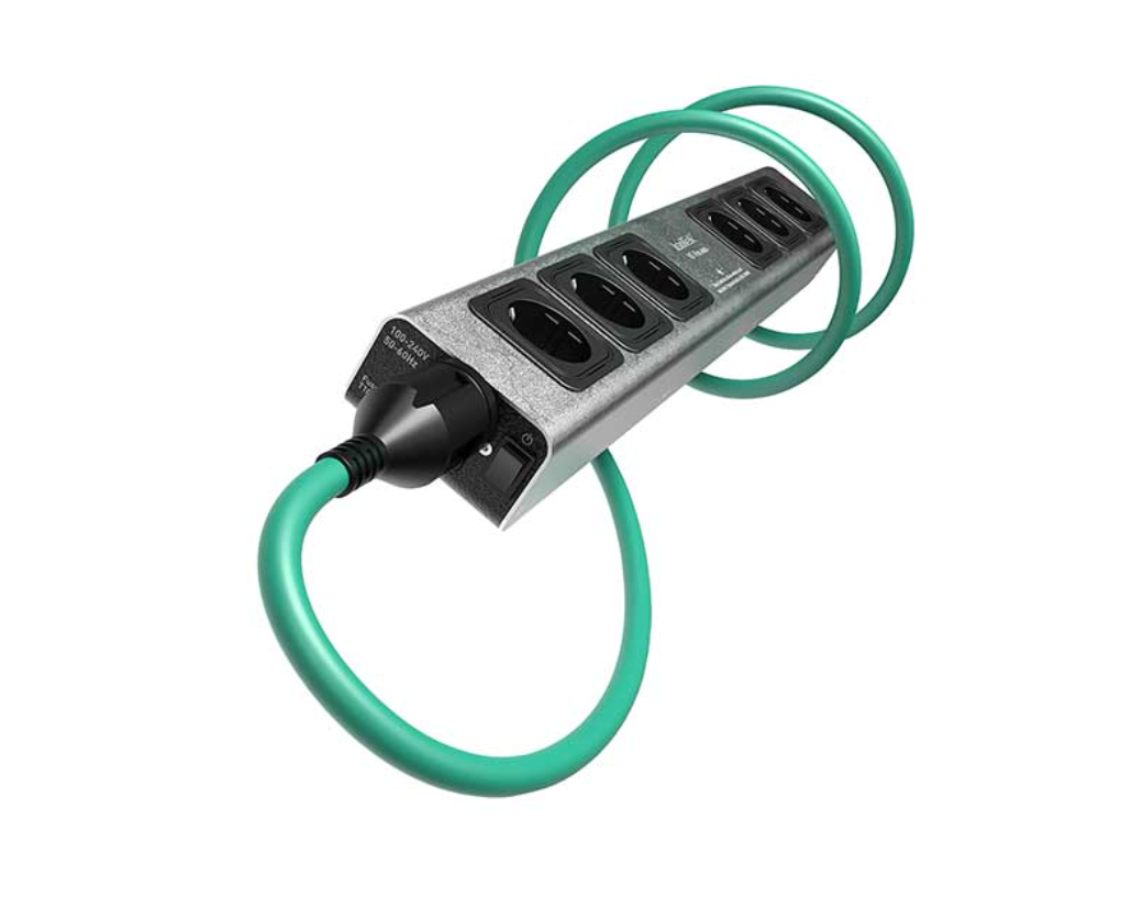 Die V5 Polaris ist eine kompakte und elegante Stromreinigungs- und Verteilerleiste mit einer Länge von nur 510 mm, einer Breite von 80 mm und einer Höhe von 50 mm. Sie verfügt über sechs separat geschaltete Ausgänge, die alle direkt mit der Leiterplatte verbunden sind. Die meisten Leistungsfilter dieser Art verfügen über miteinander verbundene, in Reihe geschaltete Ausgänge – was nicht sonderlich klug ist, da sich die von der angeschlossenen Elektronik erzeugten Gegentaktstörungen dann von der einer Ausgangsbuchse zur anderen überlagern. Die elektrische Architektur und Konstruktion der Polaris ist solchen Filtern deutlich überlegen.